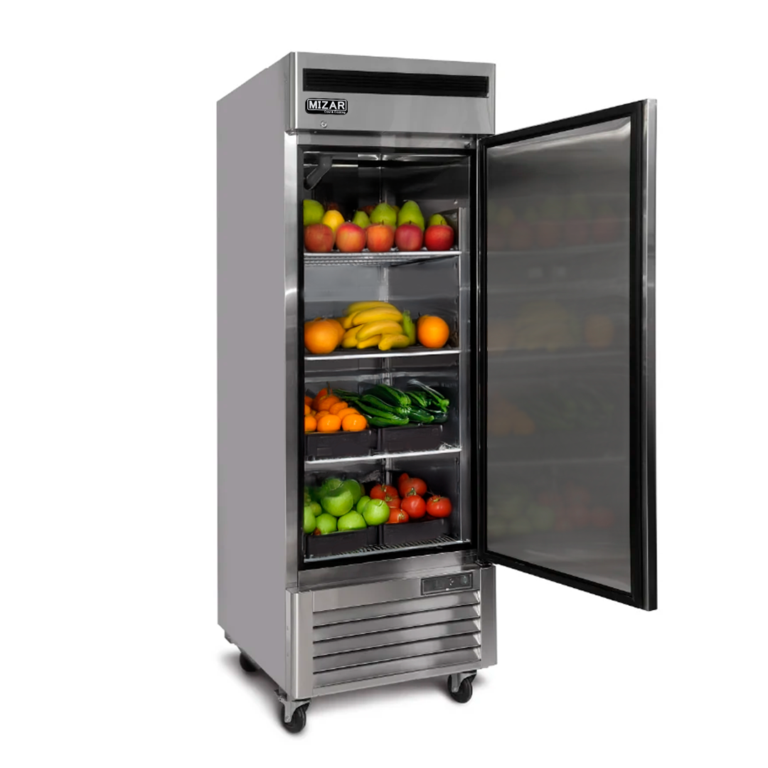 • Marca: Mizar • Mod: MBF8185PE41 • Gas: R-404A • Acero inoxidable • Medidas: 685mm(L) x 800mm(P) x 2135mm (H). • Temperatura: 2°C a +8°C • Aislación de poliuretano de alta densidad • Alta capacidad de almacenamiento. • Sistemas eléctricos • Sistema de frío forzado • Sistema de cierre automático • Puerta de acero inoxidable. • Repisas regulables. • Luz automática • Evaporador al abrir las puertas • Diseño ergonómico. • Capacidad: 597 Lts. • Ruedas: 04